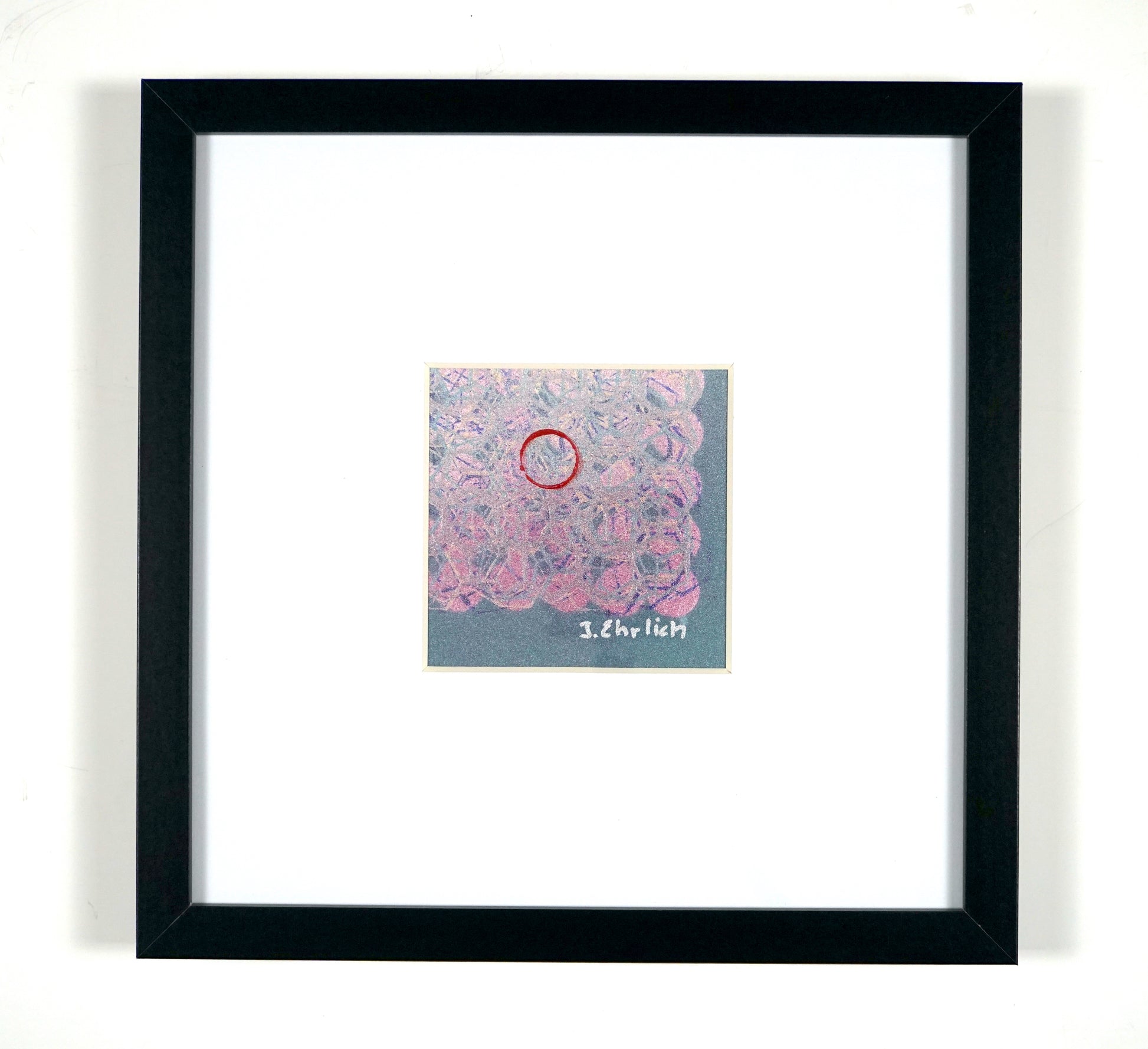 This 13"x13" artwork comes matted and wrapped in a sleek black frame. Its geometric designs weave a delicate lace effect, making it a charming little piece for any room or any cozy corner craving a pop of pink. Enjoy free shipping anywhere in the USA!