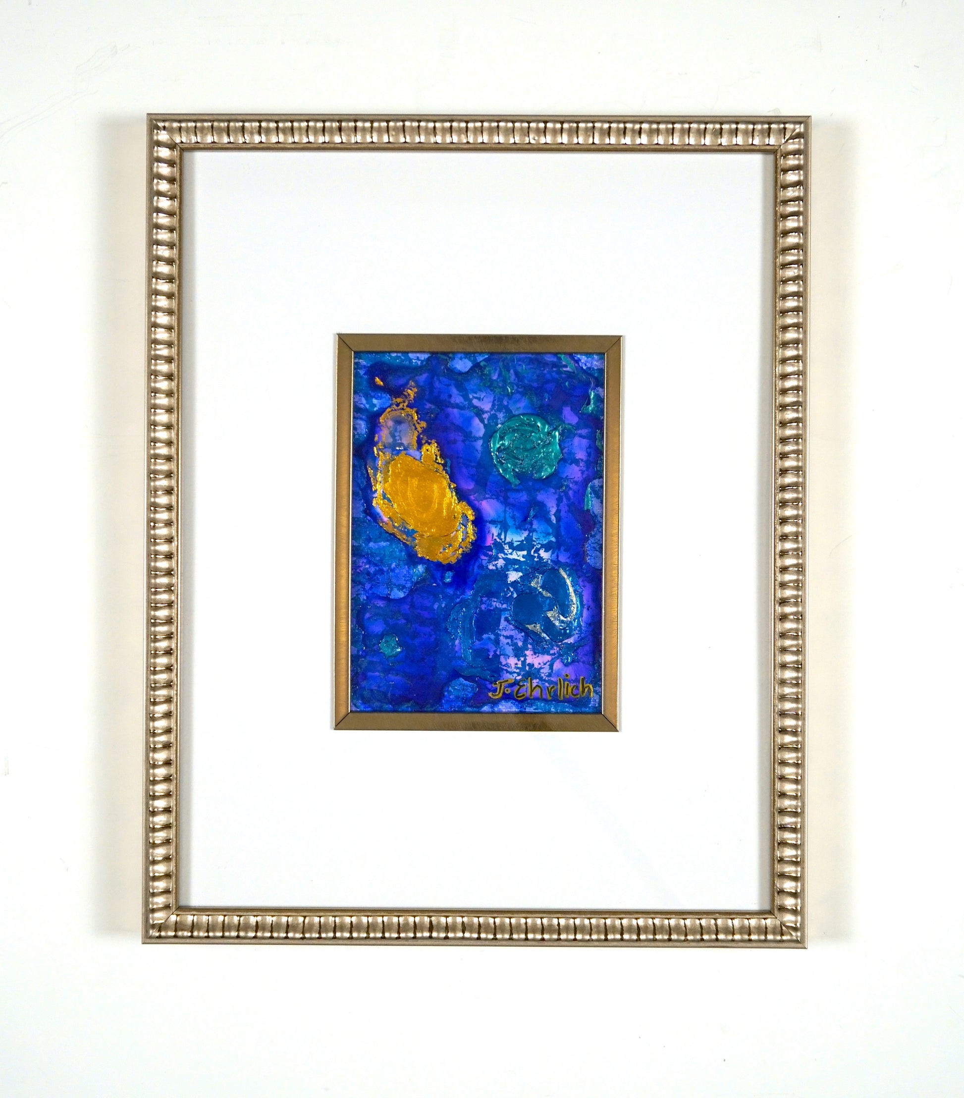 This 12"x15" artwork, showcased in a premium gold frame with intricate detailing, offers you a perspective as if you're floating above a Bahamas reef. Vibrant acrylic blues mixed with shimmering gold textures create a captivating centerpiece. Enjoy free shipping across the USA.