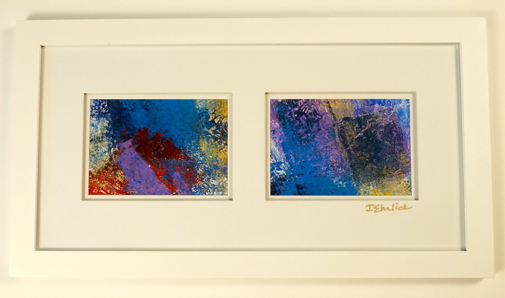 Measuring 12"x22" with mat and framed in white frame (actual frame is bright white, but doesn't show up well in photo). This piece features a sophisticated contemporary abstract design rendered in deeply rich acrylic paints. Enjoy complimentary shipping throughout the USA.