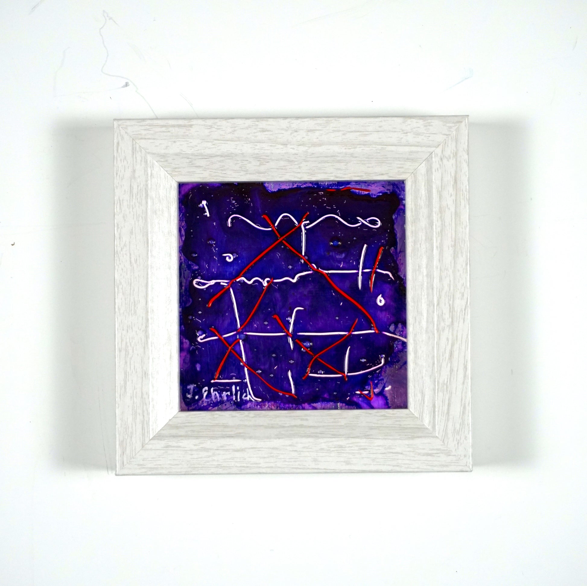 This 6"x6" framed piece packs a punch with its vibrant acrylic purple base accented by pops of red and white. Compact yet impactful, it’s the perfect little touch of charm for snug spots or a delightful original art gift that’s sure to impress. Free USA shipping.