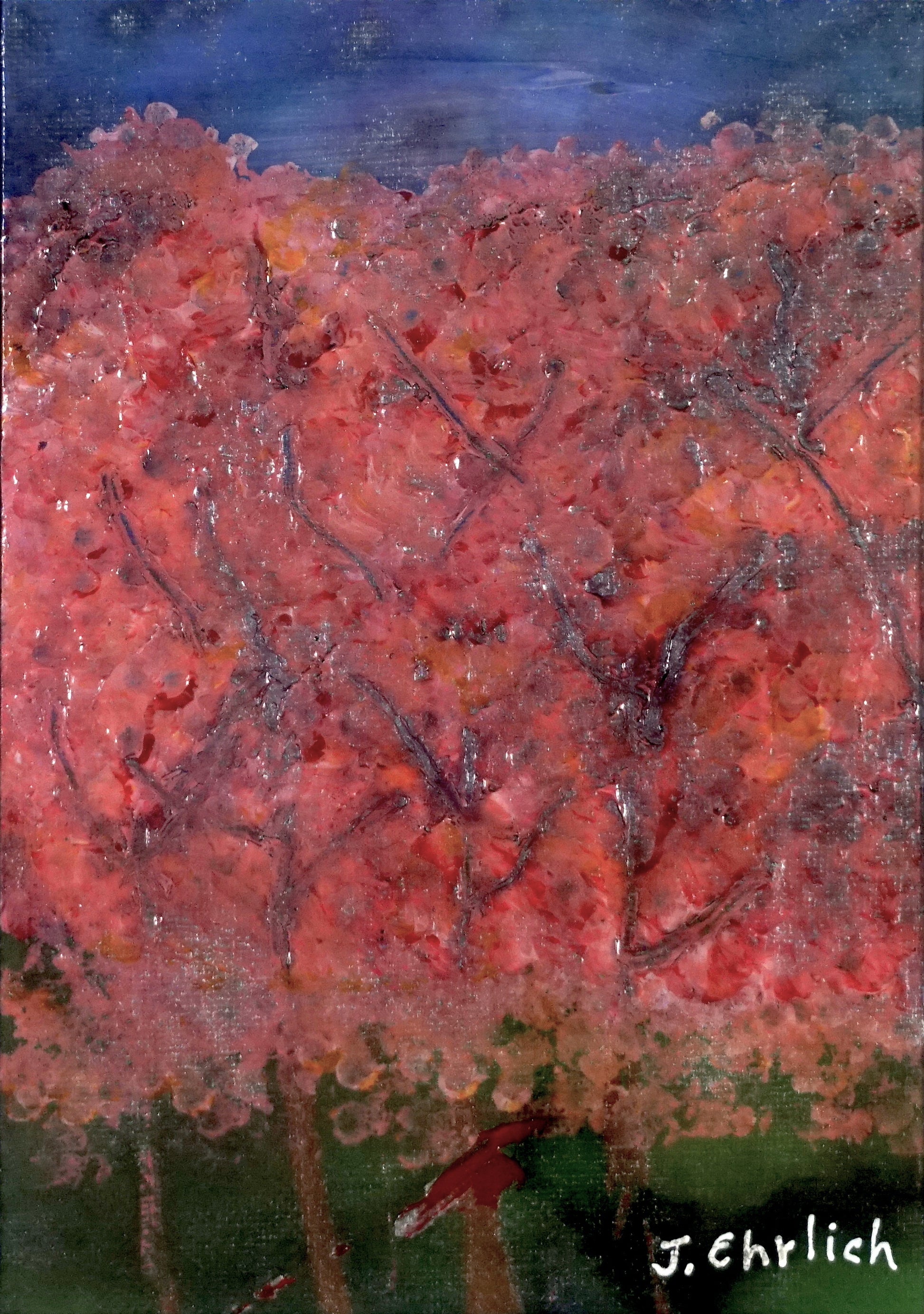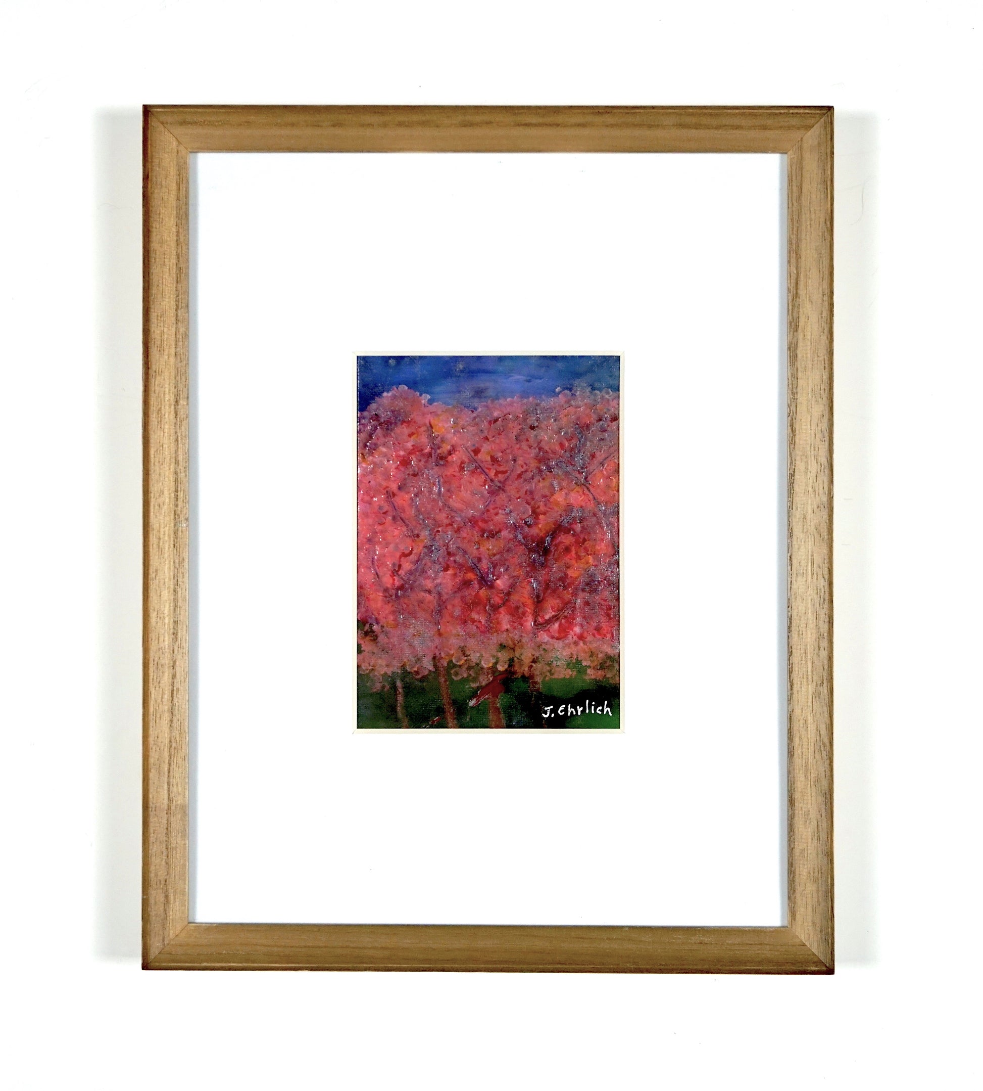 12"x 15" matted in natural wood frame. Subtle colors and simplicity in this acrylic portrays a late fall afternoon in the backyard. Free shipping in the USA.