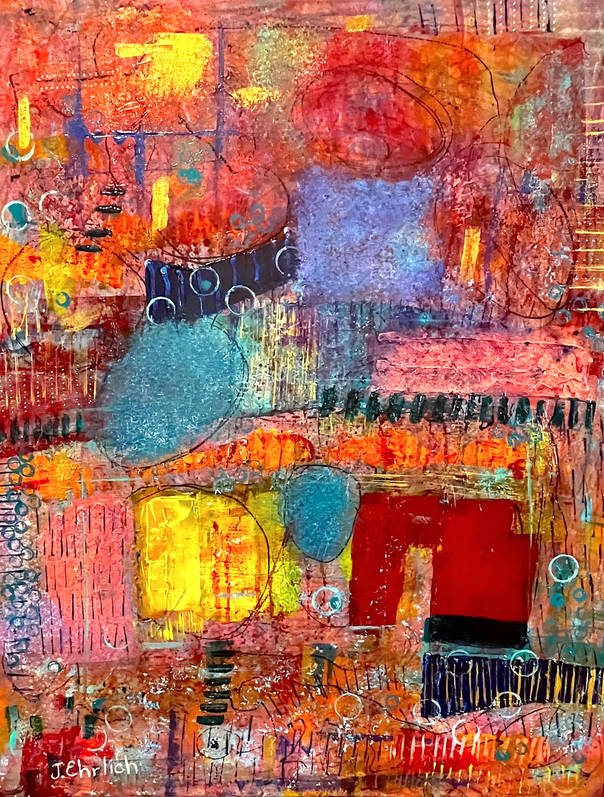 Measuring 24" x 30" x 1-1/2", this gallery-wrapped canvas dazzles with lively acrylic hues and layered textures. Every corner reveals captivating marks and charming patterns, encouraging you to uncover new surprises throughout. Embark on a vibrant journey with this energetic artwork. Free shipping available throughout the USA!