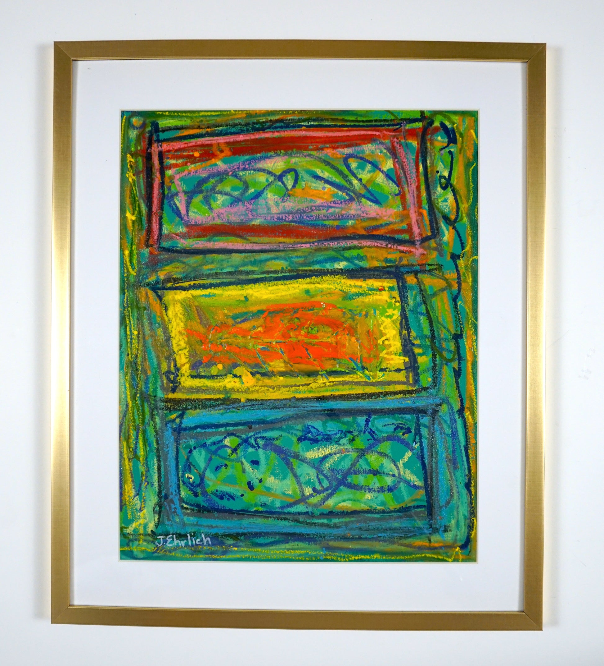 Measuring 21"x25", this piece is matted and framed with a gleaming gold trim. It's vibrant, daring, and full of life. Crafted using acrylics and melted oil pastels, it boasts stunning textures and a swirl of captivating colors. A must-have that sparks curiosity and livens up any space. Enjoy free shipping across the USA!